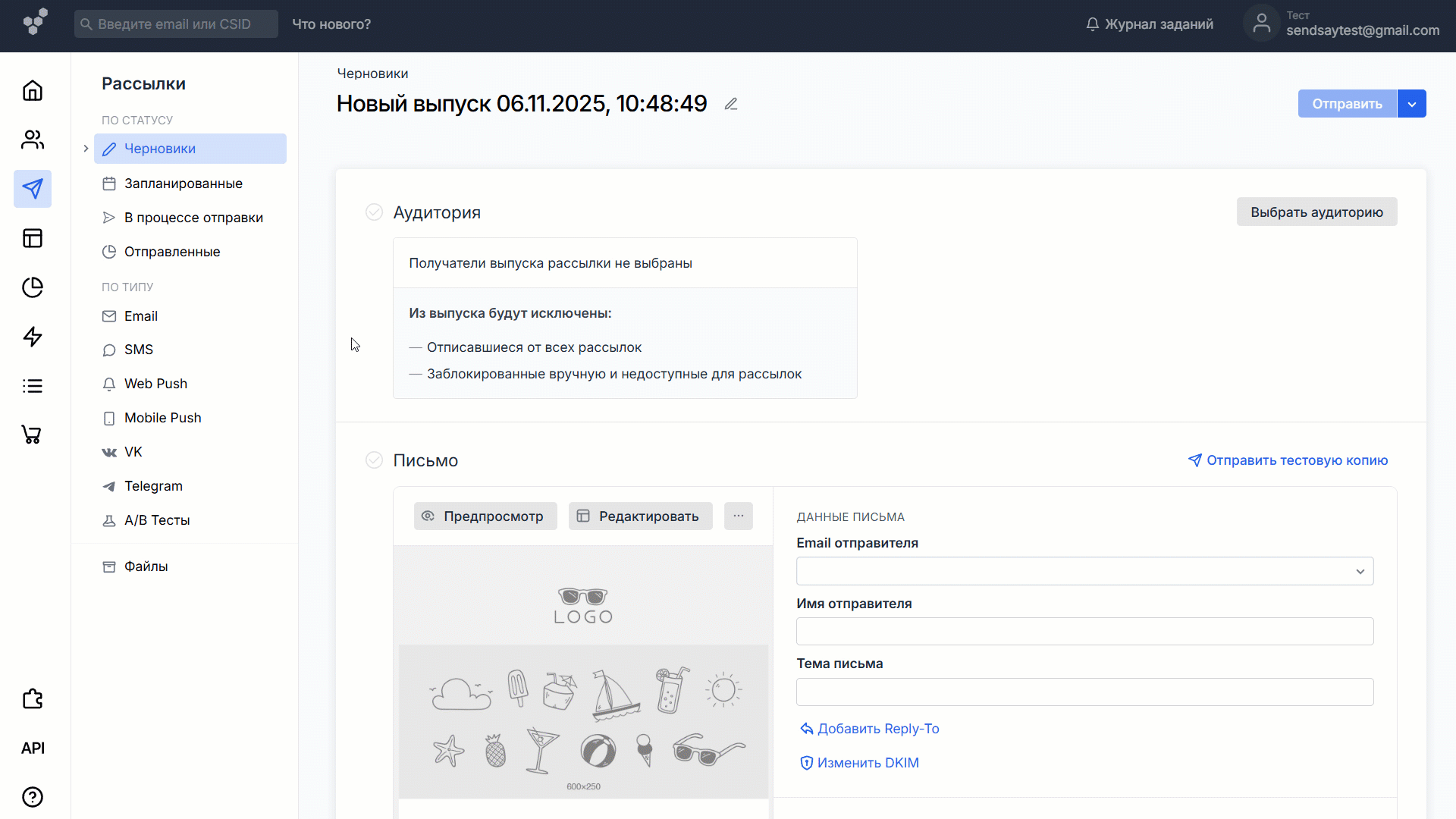 Письмо нужно будет отправить как тестовую копию, а не обычную рассылку — иначе Gmail не примет его для проверки.